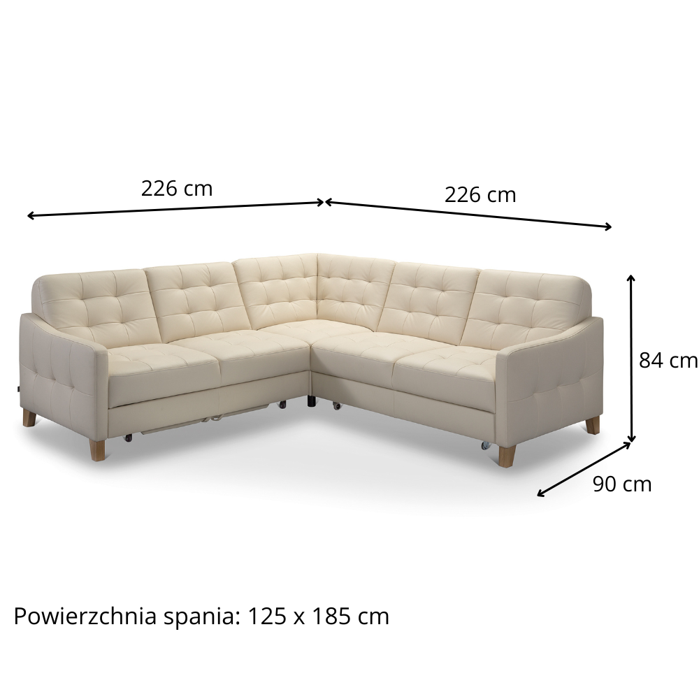 Narożnik MOMO rozkładany z pojemnikiem L-kształtny skórzany