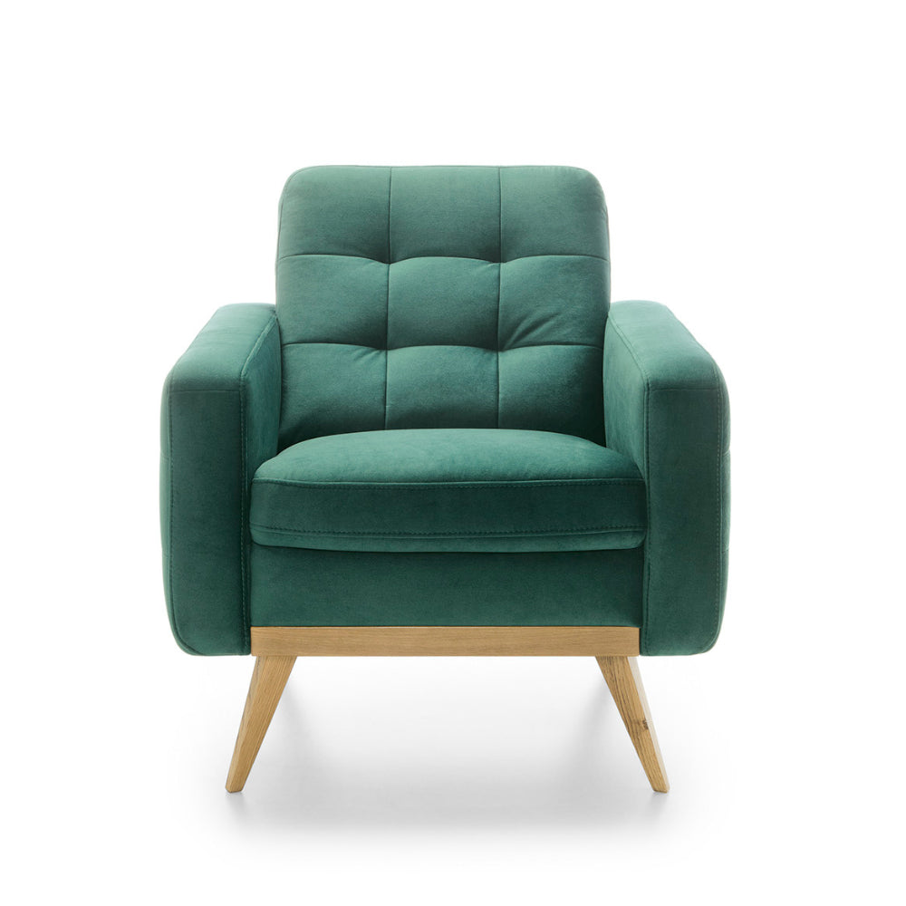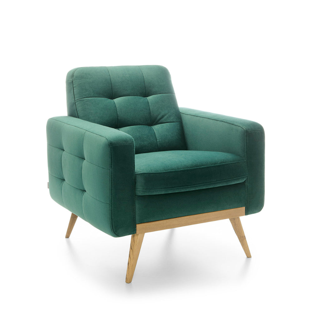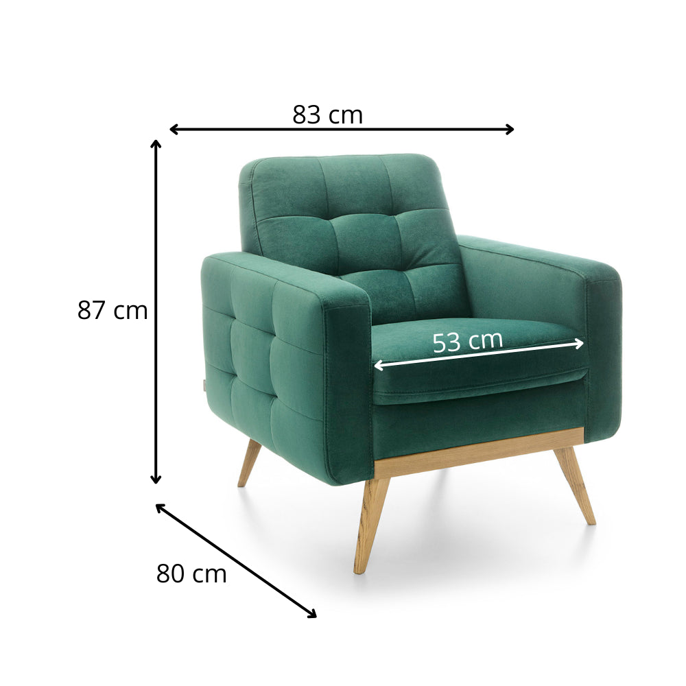 Fotel pikowany NOVA wypoczynkowy na wysokich drewnianych nóżkach