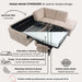 Narożnik EMA posiada pojemny schowek na pościel, wykończony białą płytą. Zmieścisz w nim kołdry, poduszki i koce, zachowując elegancki wygląd mebla i porządek w strefie dziennej.
