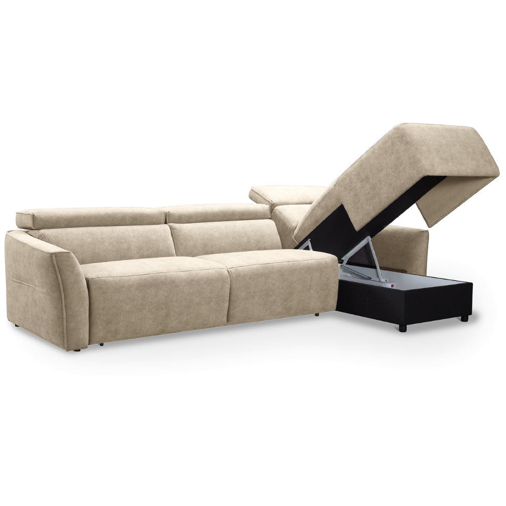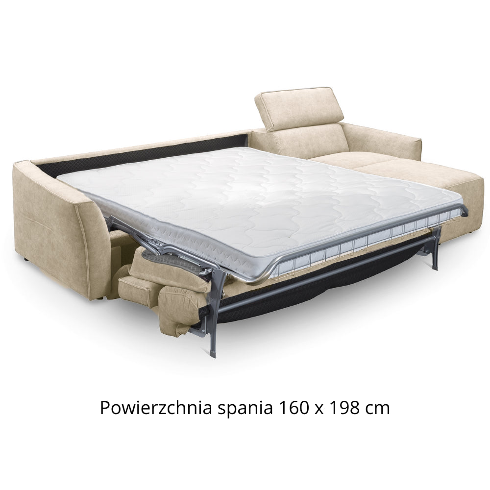 Narożnik NOLA z funkcją spania codziennego stelaż włoski z materacem 160 cm i pojemnikiem na pościel