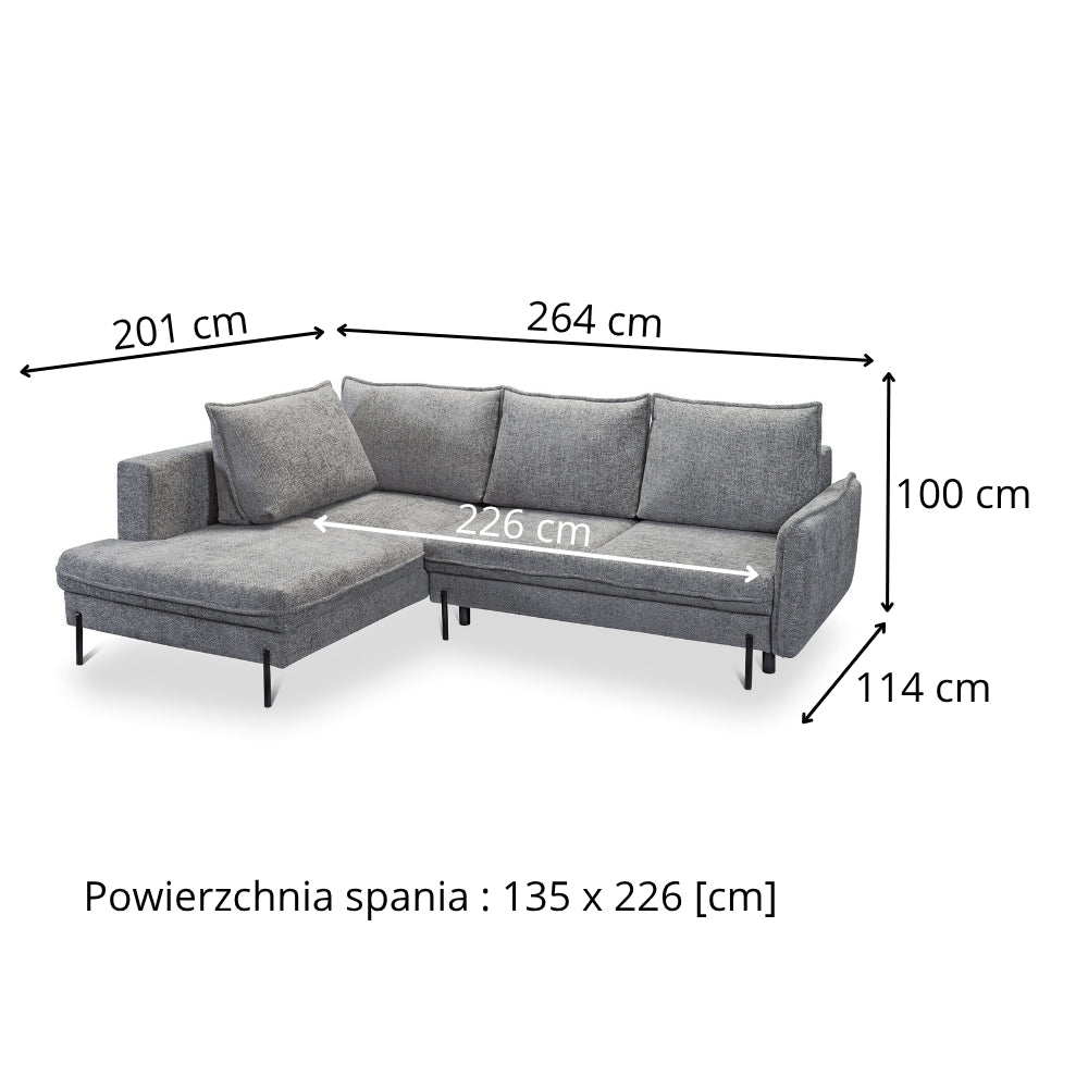 Narożnik BJORK rozkładany z pojemnikiem na metalowych nóżkach