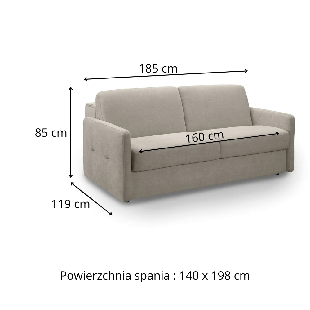 Sofa EMA 2,5 osobowa z pojemnikiem i funkcją spania codziennego stelaż włoski z materacem 140 cm