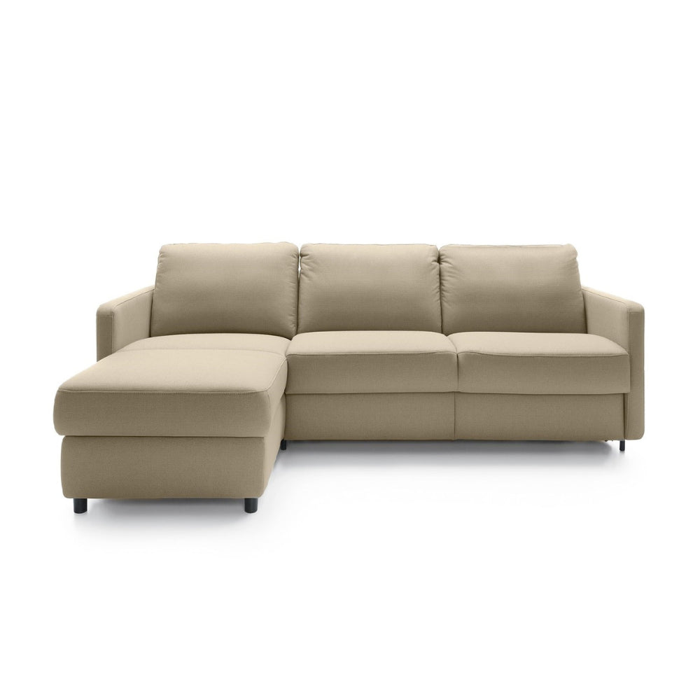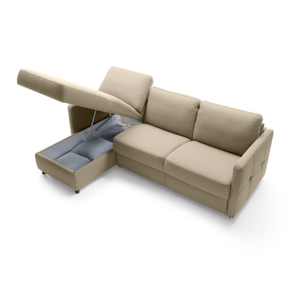 Narożnik EMA z funkcją spania codziennego stelaż włoski z materacem 120 cm i pojemnikiem na pościel