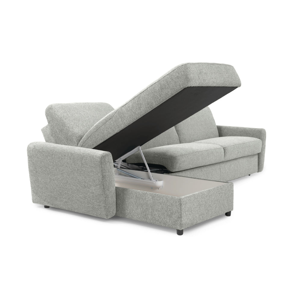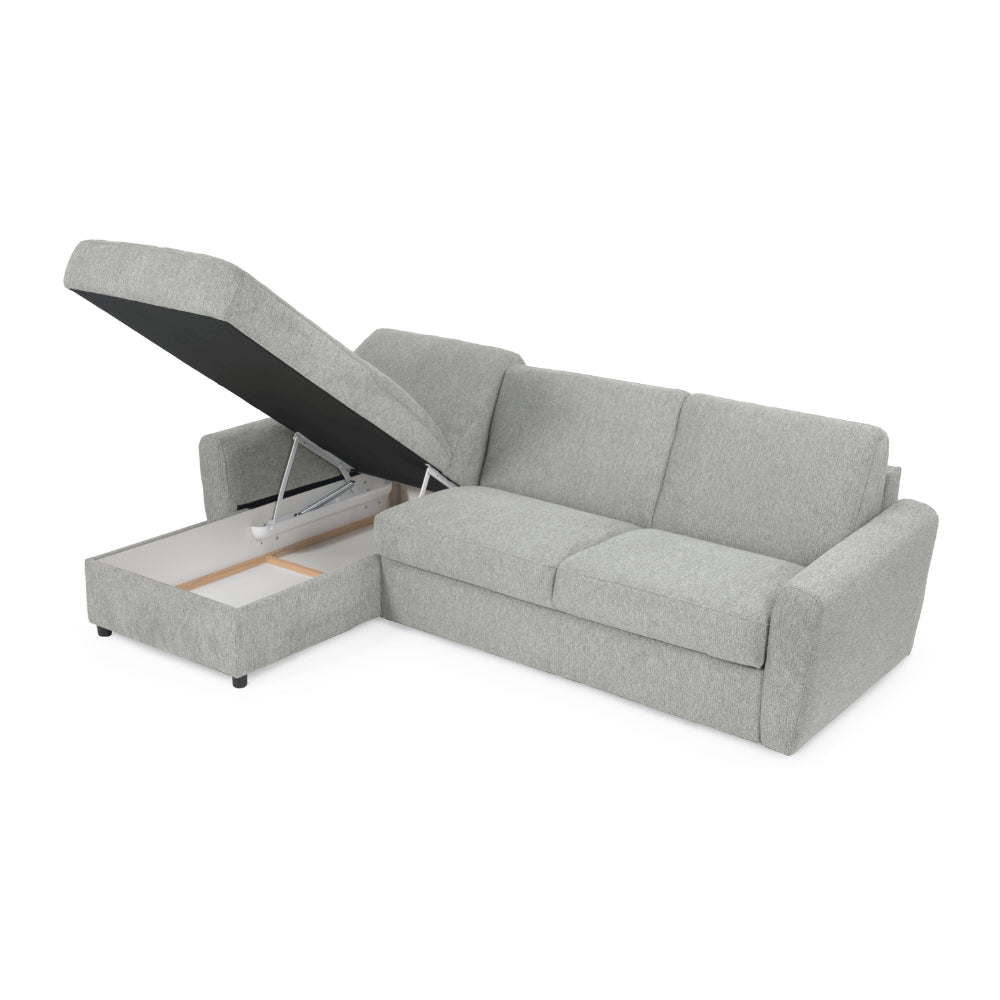 Narożnik DOLLY z funkcją spania codziennego stelaż włoski z materacem 140 cm i pojemnikiem na pościel lewostronny