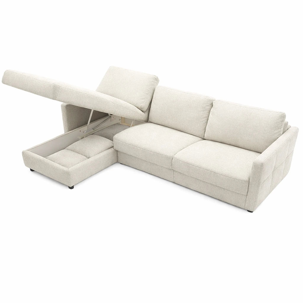 Narożnik EMA z funkcją spania codziennego stelaż włoski PRO z materacem 160cm i pojemnikiem na pościel